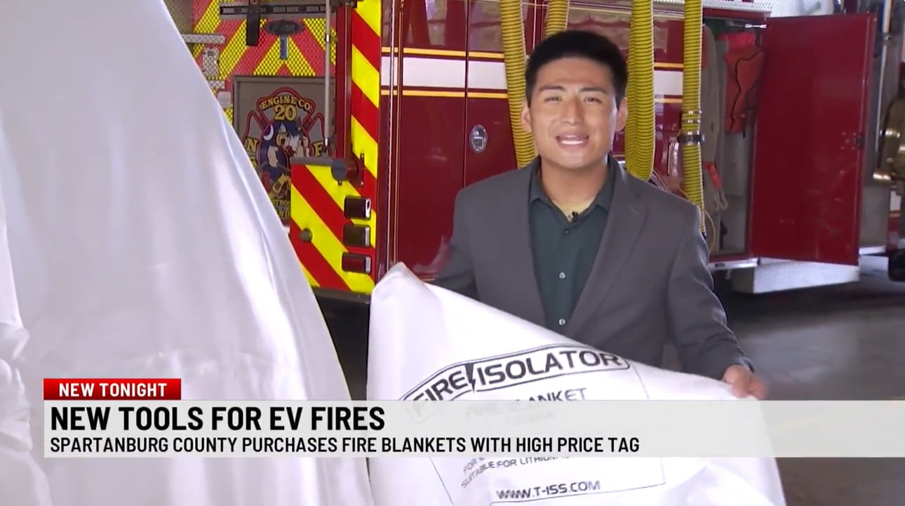 Tal como destacó WSPA 7News, el Departamento de Bomberos del Condado de Spartanburg, en Carolina del Sur, ha incorporado mantas ignífugas Fire Isolator para incendios de vehículos eléctricos, suministradas por nuestro distribuidor local, Renovo. Este nuevo equipamiento refuerza la seguridad de los bomberos y mejora la eficiencia de la respuesta durante incidentes de incendio en vehículos eléctricos.