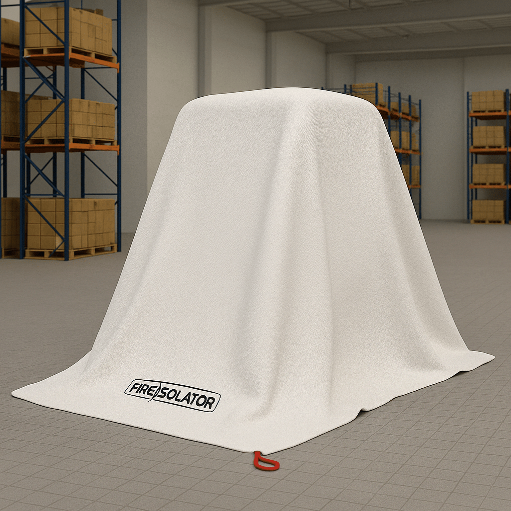 The Ultimate Forklift Fire Blanket is designed for lithium-ion battery fires in forklifts and other electric vehicles used in warehouses and storage areas. Tested to top fire safety standards, the FI-BL0707 (and larger FI-BL0808) has proven its performance in real-life fire scenarios. It contains flames, limits toxic smoke, and creates the ideal conditions for aerosol units – helping to prevent fire spread and reduce damage to your facility.