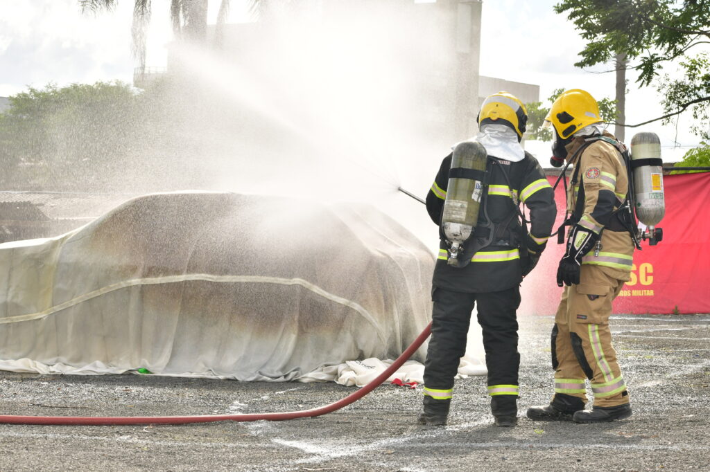 Deployed under the Fire Blanket, these handheld units release a fine potassium-nitrate aerosol that interrupts the chemical reaction of the fire, actively controlling flames from the battery. They also reduce toxic gases and vapors beneath the blanket, minimizing the risk of gas deflagration. Combined with Fire Blankets, Water Mist, and the EV Fire Gun, the Aerosol Units provide a critical chemical layer of protection that blankets alone cannot achieve.